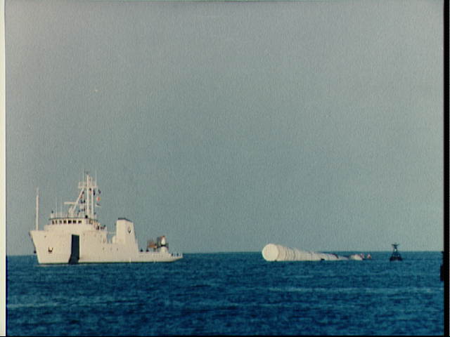 Views of the UTC Liberty and Freedom returning to Port Canaveral with the solid rocket boosters (SRB)