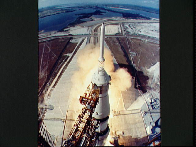 Apollo 11 spacecraft. This photograph of the liftoff was taken by a camera
